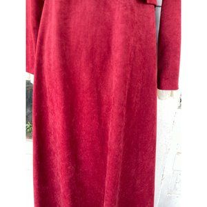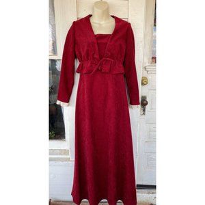 Vintage 1970s Burgundy red Maxi Dress with jacket Faux suede look