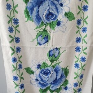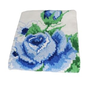 Vintage 1970's Cannon Floral Large Bath Towel New Old Stock Blue and White NWT