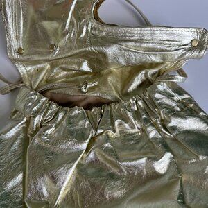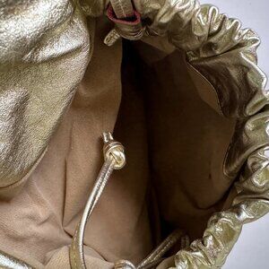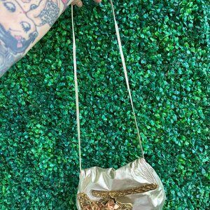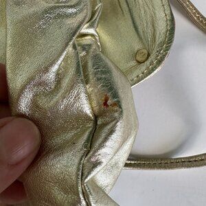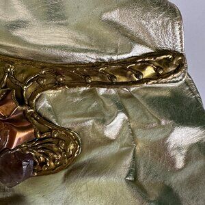 Bright fold flap with heavy metal brass and semi precious gemstones Amethyst. Gold leather. Rare find in a amazing condition