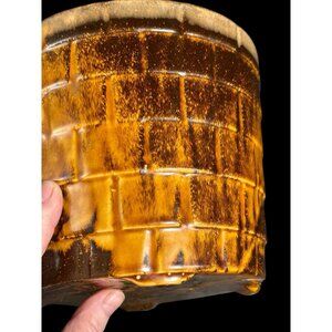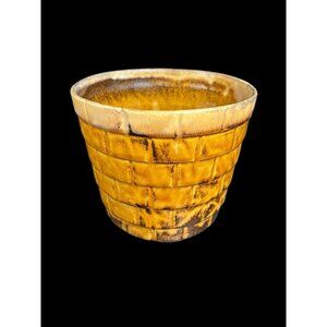 Vintage 1970s Ceramic Gold Drip Glaze Basket Style Planter Pot 6" Marked. Please see photos for additional information and item particulars.