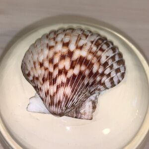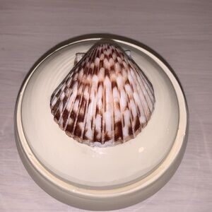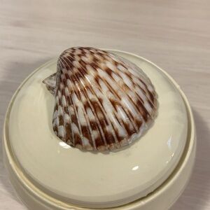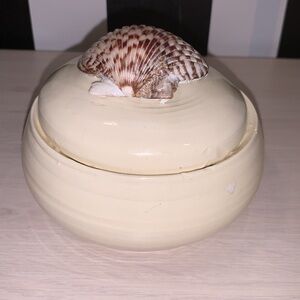 Vintage 1970s Ceramic & Shell Trinket or Jewelry Box With Lid Coastal Nautical