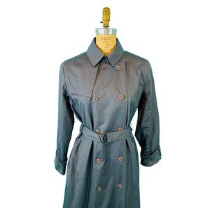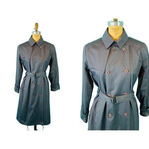Vintage 1970s Charcoal Trench Coat Gray Button Down Women's Medium