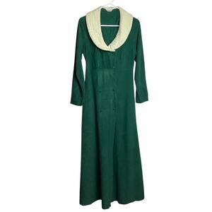Vintage 1970s Cherri Lynn Jr Long Robe Womens S Green Velour Button Cottagecore