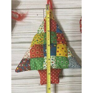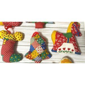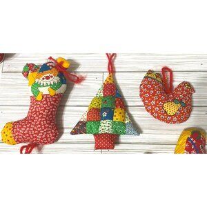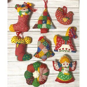Vintage 1970s Christmas Ornaments Cut & Sew Calico Stuffed Fabric Plush Lot Of 8