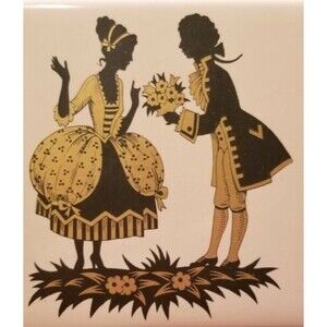 Vintage 1970's Colonial Couple Ceramic Tile & Wooden Trivet 6.25"x6.25"x.75