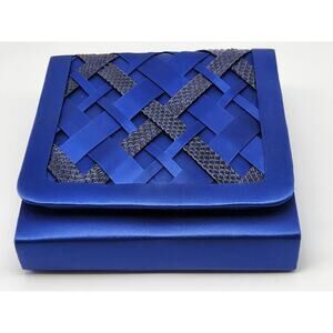 Vintage 1970s Cora Jacobs Electric Blue Satin Bag with Rope Strap.