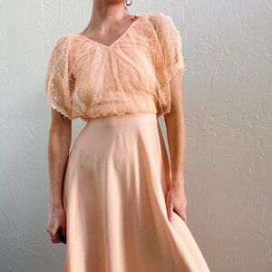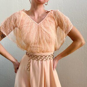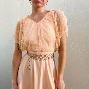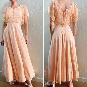 Vintage 1970's Coral Peach Lace Formal Maxi Gown