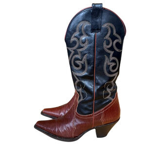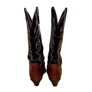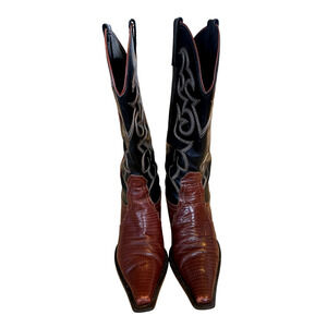 Vintage 1970s Cowboy Boots 6 Real Leather Snakeskin Embossed Western Brown Black