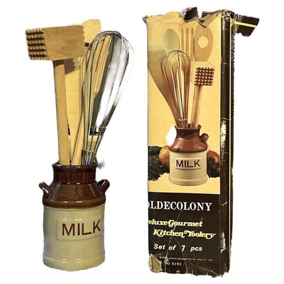 Vintage 1970s DEADSTOCK Ceramic Milk Jug Utensil Holder 7pcs Set