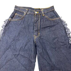 Step into authentic 70s style with these vintage Daddy’s Money jeans. Featuring a classic high-rise fit, wide flare leg, and dramatic fringe trim down the sides, these jeans are a bold and rare statement piece. Made from sturdy 100% cotton denim and manufactured in Taiwan, they embody true retro craftsmanship and Y2K-predecessor flair.