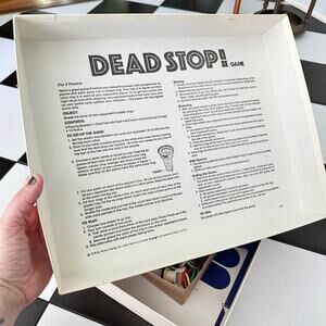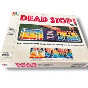 CANNOT BUNDLE DUE TO SIZE AND WEIGHT Complete in great vintage condition Dead Stop is a strategy board game for two players, created by Milton Bradley in 1979. The goal is to deduce the color of the opponent's hidden rings on their pawns while scoring points by moving pawns across the board.