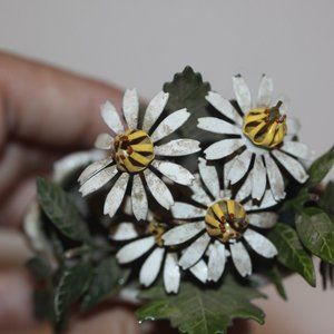 Vintage 1970’s Detailed Metal Flower In Porcelain Vase MANN KOREA