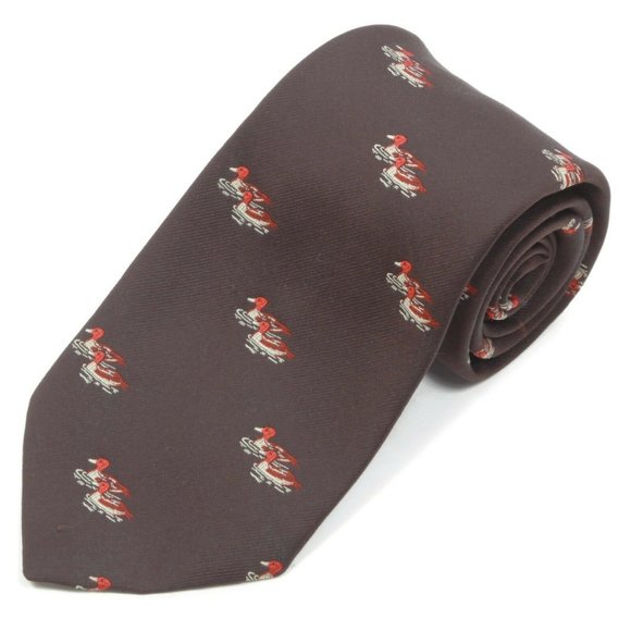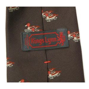 Vintage 1970s Duck Goose Bird Men's Silk Neck Tie Brown Animal Theme Kings Lynn