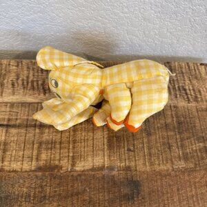 Vintage 1970s Elephant Plush Yellow 70s Retro 8” Plaid Check Nursery Originals