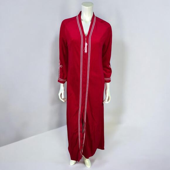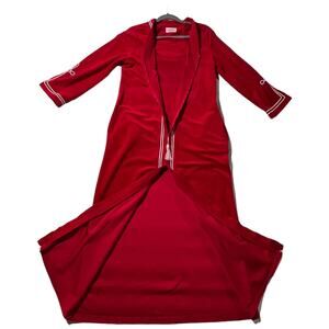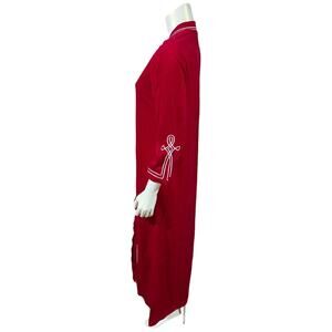 Vintage 1970s Evelyn Pearson Red Polyester Long Robe/House Dress with White Trim