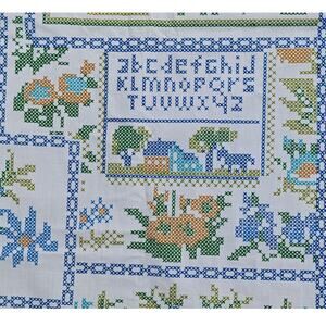 Vintage 1970s FAUX CROSS-STITCH SHEET FABRIC Sweet Sayings "Home Sweet Home" Etc