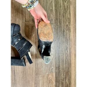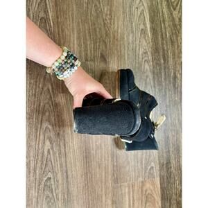 Vintage 1970s Faux Black Suede & Patent Leather Clogs Sling Back AS IS. Sold as is, what you see is what you get. Approximately a size 7. Fair vintage condition and have been well used. See all photos prior to purchase.