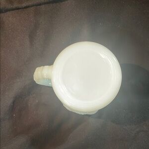 This vintage Fire King Grog coffee mug from 1970s features a small size, made of white milk glass with a capacity of 8 ounces.