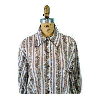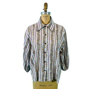 Vintage 1970s Floral Blouse Boho Land 'N Sea Striped Top | B 52"