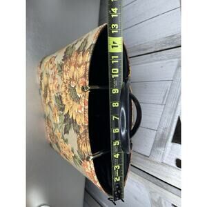 Vintage 1970s Floral Yellow Tapestry Material Tote Bag Purse Top Handle