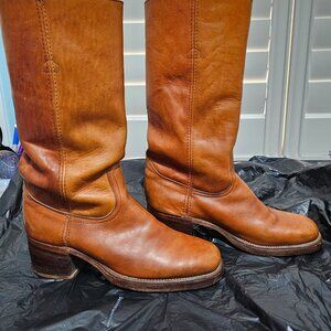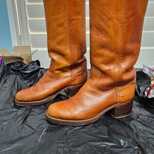 Vintage 1970s Frye Black Label Leather Square Toe Boots Size 9.5 D tan