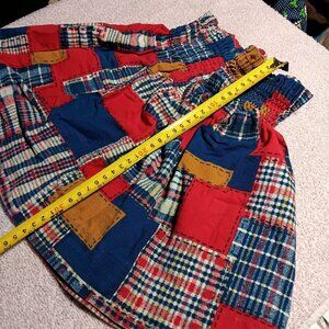 Vintage 1970's Girls 3T 4T Peasant Handmade Patchwork Plaid Elastic Waist Skirt