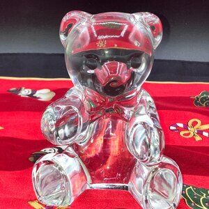 A 1970's Steiff bear by Godinger. Lead crystal that glows a lovely blue under UV. No Chain is included and that is reflected in the price. One small underside ding pictured. It does not distract.