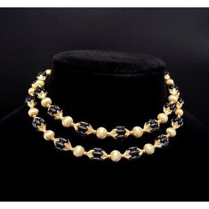 Vintage 1970s Gold & Black Double Strand Beaded Choker Necklace