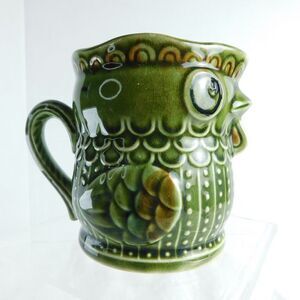 Vintage 1970's Green Ceramic Chicken Rooster Cup, Trimont Japan GUC