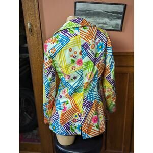 Vintage 1970s Gregg Draddy Psychedelic Dayglow Floral Hawaiian Suit Jacket Sz S