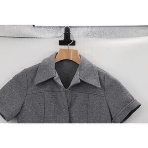 Vintage 1970s Grey Long Short sleeve Button Down Blouse