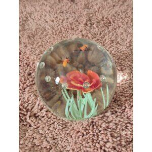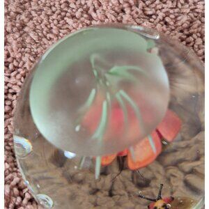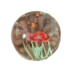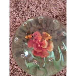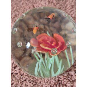 Vintage 1970's Handmade Art Glass Paperweight Flower And Bees 3"