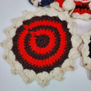 Vintage 1970s Handmade Crochet Pot Holders w/ Indian Child 15 Inch Top To Bottom