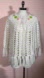 Warm and cozy pure white crochet knit sweater in a sweet cottagecore retro style with charming pom pom. Designed in a pull on style with a tie front and sweet pom poms of lime green, barbie plastic pink and a pale cloud blue. large hand crochet knit in a a loose weave with a medium weight white yarn. Easy to wear tie collar neckline, A-line shape with a fringed bottom edge. Sweater weight poncho that can be used year around. No tags and appear to be handmade.