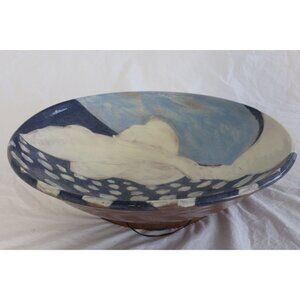 Vintage 1970’s Handmade Extremely Large "Cloud" Pottery Bowl Signed By Artist