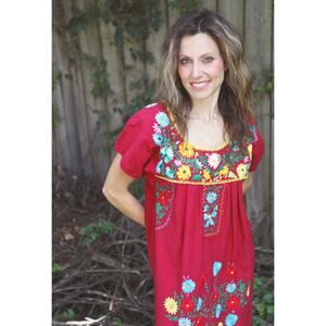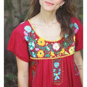Vintage 1970's Handmade Oaxaca Embroidered Boho Mexican Cotton Dress