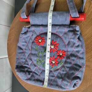 Vintage 1970’s Handmade Reversible Denim Handbag Purse. Embroidered, Quilted Bag