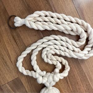 Vintage | 1970s Handmade Yarn Macrame Hanging Plant Hanger Cream Boho Home Decor