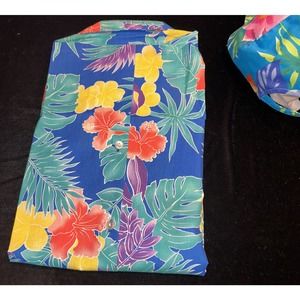 Vintage 1970s Hawaii Button Up Shirt & Hat Sz Large In Mint Unworn Condition!.