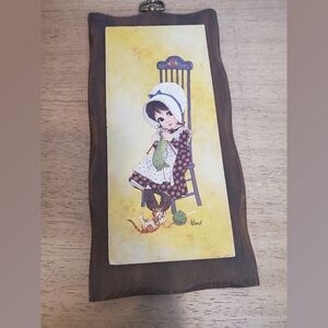 Vintage 1970's Holly Hobbie Like Wooden Plaque