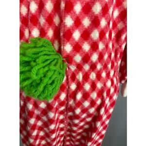 Vintage 1970s Homemade Clown Costume Red White Checked Green Pom Pom Small