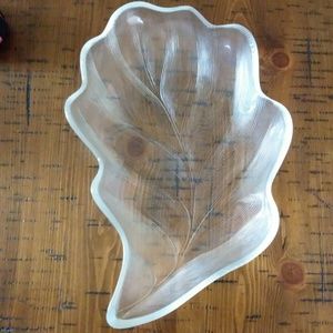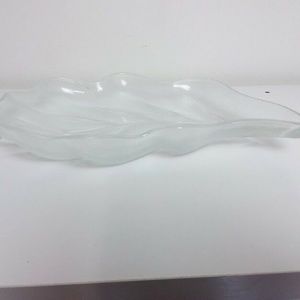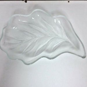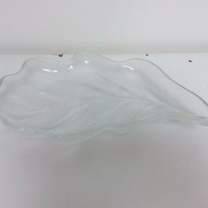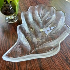 Vintage 1970s Hoya Glass Leaf Serving Platter Dish 12.5” Japan Textured Mid Cent