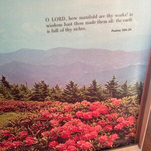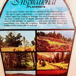 Very unique 70s collectible. Set of six placemats. Each placemat is a landscape scene withban inspirational bible passage. this comes in the original packaging original tissue in box still intact perfect condition.