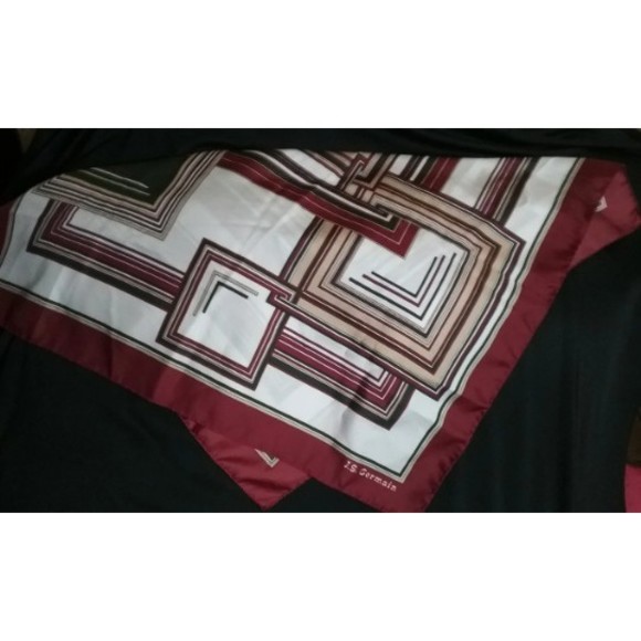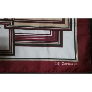 Beautiful retro 1970's geometrical print scarf by J.S. Germain. Very good vintage condition. This is a genuine vintage item. Very lively colors are: maroon, white, forest green and beige. The scarf measures 30.5" x 30". Please see all photos. Will ship within 1 business day. Thank you for shopping and supporting small business.