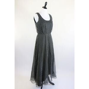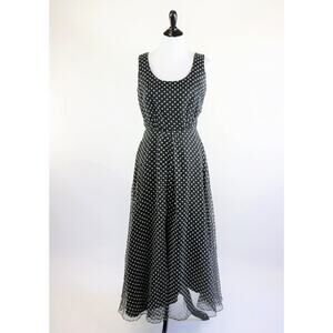 Vintage 1970s Jack Bryan Black and White Polka Dot Chiffon Dress Medium