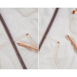 1970s 70s vintage retro style boho bohemian minimalist solid one color white cotton denim jean levis levi's orange tab collectible hooded with hood zip up front short coat long sleeve pockets everyday spring fall stylish hippie small medium 60s 1960s festival layer layered wear to school casual comfy cozy hoodie