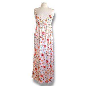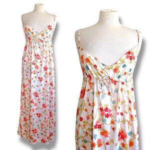 Vintage 1970s Kayser Womens Nightgown Sz Medium Cream Floral Nylon Maxi Gown