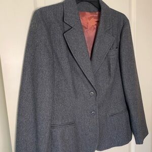 The Vintage Kirkland Hall 100% Wool Size 12 Blazer is a classic piece from the 1970s, made in the United States with a sophisticated gray color and a timeless blazer style. This original blazer exudes a secretary/Geek look, perfect for everyday wear. The high-quality material of 100% wool gives it a luxurious feel and a durable construction, making it a versatile addition to any woman's wardrobe. This Union made in the USA blazer is an investment piece for any wardrobe. This item is vintage and has wear from use and age, beautiful and timeless being sold as is.