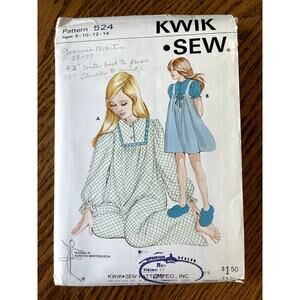 Vintage 1970s Kwik Sew 524 Sewing Pattern Size 8 - 14 Girls Nightgown COMPLETE