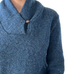 Vintage 1970s LL Bean Navy Blue Chunky Wool Cowl Neck Sweater Made USA Sz M